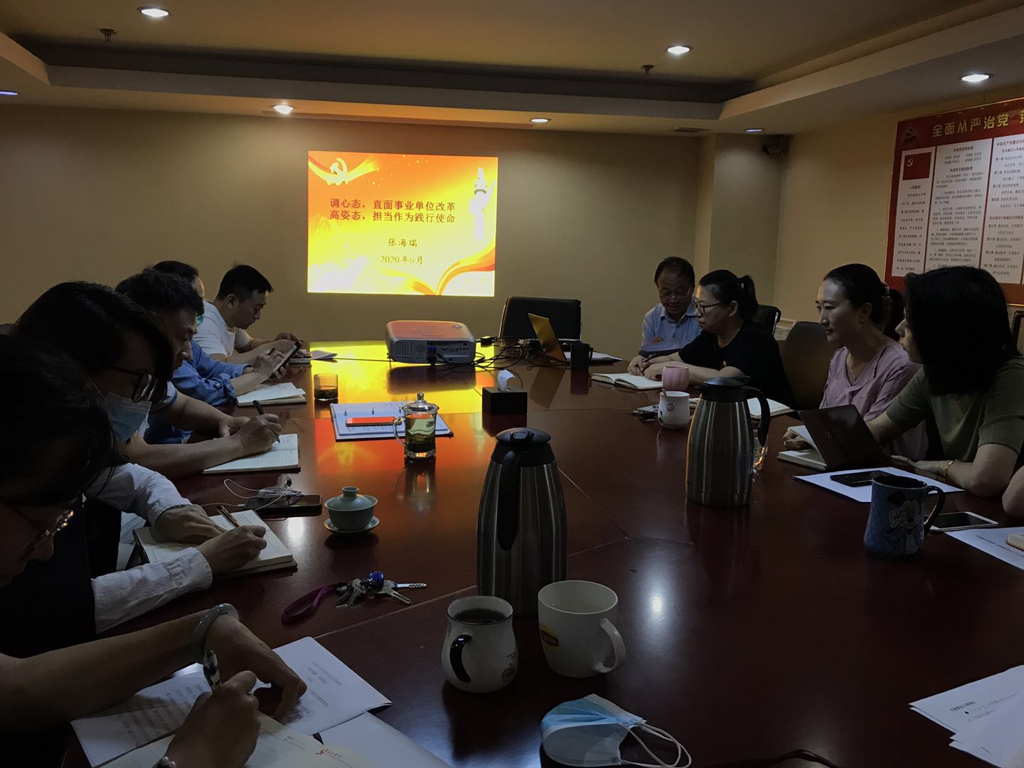 6月12日,盲按中心党支部根据市残联机关党委《关于组织开展庆祝中国共产党成立99周年系列活动通知》精神,中心副主任张海瑞同志结合当前疫情形势和任务、事业单位改革和党员干部的思想实际情况,以《用好心态迎接改革 以高姿态担当使命》为题,为全体党员干部上了一堂生动的党课。