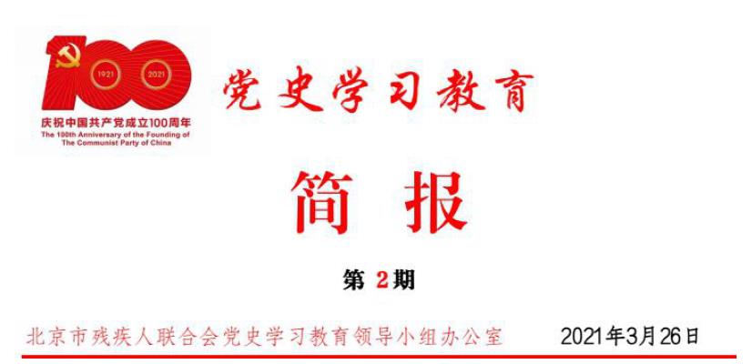 根据市残联党组工作部署,连日来各党支部迅速行动,在集中传达学习中央、市委、市残联党组党史学习教育动员大会精神的基础上,研究制定学习教育安排,召开动员会,掀起了党史学习教育热潮。