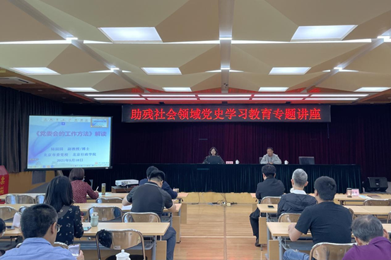 为深入学习贯彻习近平总书记在党史学习教育动员大会上的重要讲话精神和市委蔡奇书记在全市党史学习教育动员大会的讲话精神,迎接建党100周年。2021年5月18日,市残联社会组织党建工作委员会在北京市残疾人社会服务指导中心举办了“毛泽东同志《党委会的工作方法》解读”主题讲座。市委党校副教授陆园园围绕《党委会的工作方法》一文发表的历史背景、主要内容和当代价值,用两个半小时的时间进行了详细解读。参加学习的党员反映,这次讲座内容丰富,生动精彩,收获很大,一致表示,要把学习成果运用到工作中,进一步提升政治站位,严守政治规矩,结合党史学习教育,认真开展好永远跟党走群众性主题教育活动,落实蔡奇书记“365天,天天都是助残日”的要求,努力为残疾人办更多的实事,让广大残疾人朋友有更多的获得感。