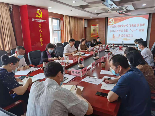 8月20日至23日,丰台区残联举办党史学习教育专题读书班,区委党史学习教育第四指导组一行到会指导,残联领导班子、科级以上中层干部和党支部委员参加学习。