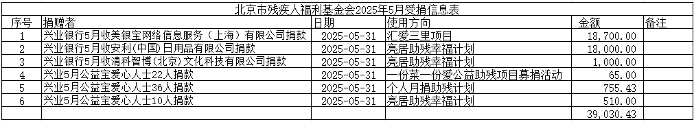 北京市残疾人福利基金会2025年5月受捐信息表