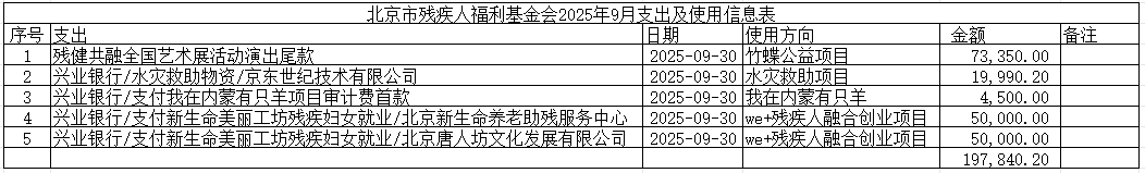 北京市残疾人福利基金会2025年9月支出及使用信息表